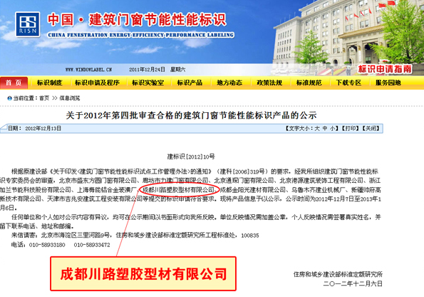 川路型材荣获“中国建筑门窗节能性能标识认证”