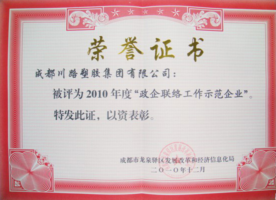 喜讯:我司荣获龙泉驿区2010年度“政企联络工作示范企业”