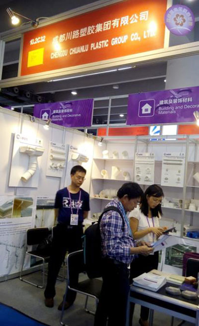 川路此次广交会参展展品有:PVC-U给水管材、管件,排水管材、管件,PVC-U屋面排水系统、同层排水系统和型材门窗系列等。其中PVC-U屋面排水系统以其卓越的产品质量和时尚的产品外观得到了前来参观客商的一致称赞;其线条流畅,设计合理,排水量大,使用寿命长,能有效的解决屋面排水问题。