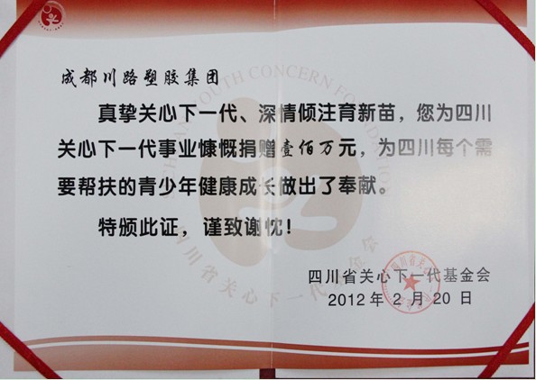 关心下一代 捐款壹佰万