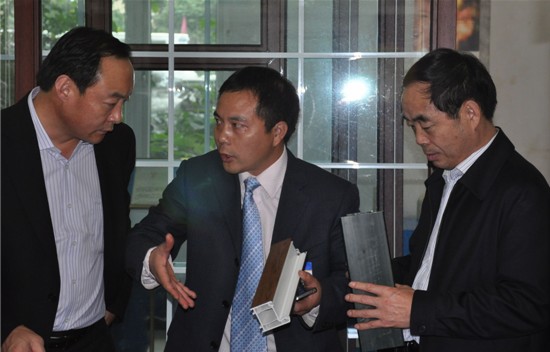 图2:徐总向骆省长(中间)一行介绍川路型材生产工艺
