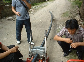 | 图1:售后服务部刘选长经理进行PE实际操作培训 | 图2:丹巴县水务局张局长现场检验川路产品及规范安装并给予高度评价 |