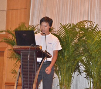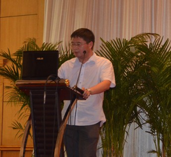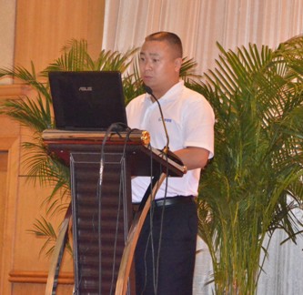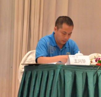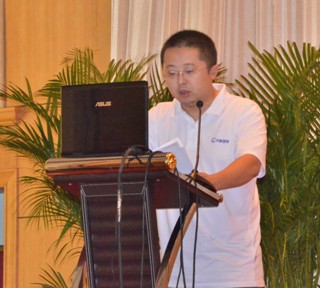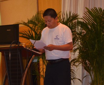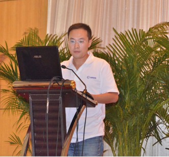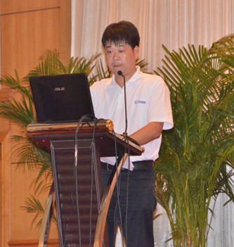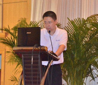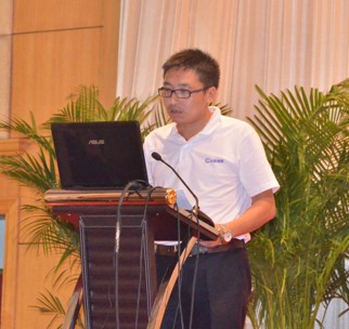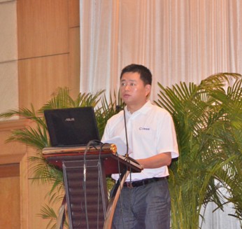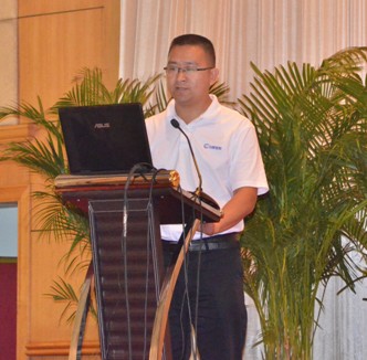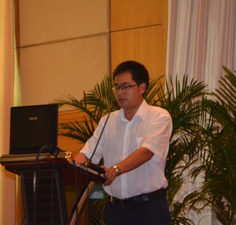 图12:管材销售直销部经理陈鸿峰先生作题为“行动决定成败”的工作报告 | 图13:管材销售中国华中区销售总经理曾季驰先生作题为“在变化中寻找机会”的工作报告 |