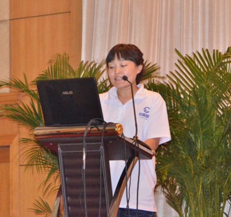 图16:型材销售成都八区经理李玮女士作上半年工作报告 | 图17:型材销售重庆七区经理胡斌先生作上半年工作报告 |