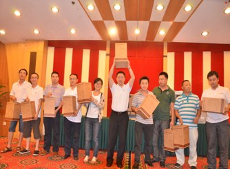 答谢晚宴上,周董和刘总举杯致辞,感谢全体员工的辛勤工作与无私奉献!随后集团领导对2011年优秀员工、优秀部门进行了表彰颁奖。同时,抽奖活动也是掌声连连,惊喜不断。