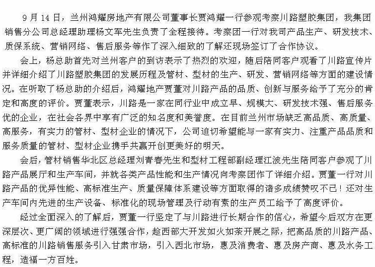 “携手并进,共创辉煌”---兰州鸿耀房地产有限公司莅临川路参观考察小记