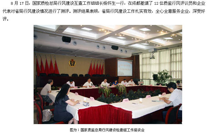 我公司质保部主任王志明先生受邀参加国家质监总局行风建设检查组工作座谈会