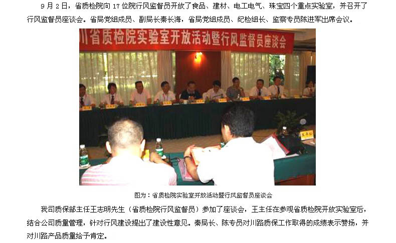 我公司质保部主任王志明先生受邀参加质检院实验室开放活动暨行风监督员座谈会