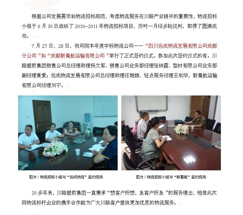 贺:川路塑胶集团2010—2011年物流招标项目圆满完成