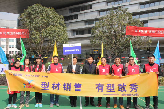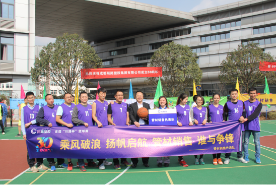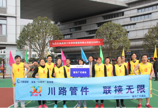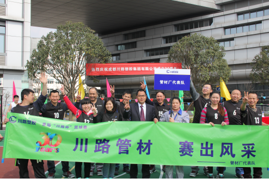2016年2月16日是川路塑胶集团成立30周年,川路第三届篮球比赛也在这一天拉开帷幕。本次篮球赛不仅为迎接川路成立30周年,也为了进一步丰富公司职工文化生活,加强各部门之间互相交流,增强行业职工的身体素质! 本次篮球比赛共有7个队伍参赛,他们是由公司各部门、各车间组建参赛,分别是:集团公司队、集团后勤队、管材厂队、管材销售队、型材厂队、型材销售队和管件厂队。比赛方法:两两进行PK和决赛。奖励制度是:冠、亚、季军;道德风尚奖、精神文明奖、积极参与奖和友谊比赛奖。 下午三点,开幕式正式开始,首届川路杯的竞赛部部长由集团副总经理徐翔担当。在开幕式上,刘总对此次篮球联赛的开展给予了肯定,对参加球赛的各队寄予了厚望,希望每个人都团结一心,并坚持“友谊第一,比赛第二”的比赛思想。