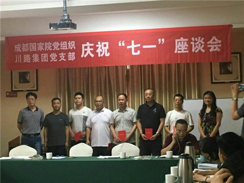 为庆祝中国共产党建党97周年,川路按照龙泉科经局党委要求,经同成都国家院党组织商定,于2018年6月29日在龙泉山庄举行庆祝七一党员座谈会,会议邀请了科经局党委参加。