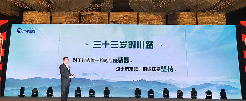 12日下午1:30,川路塑胶集团2019销售年会会议召开,会议由销售公司总经理助理张鹏主持,会上,川路集团董事总经理刘昆作了名为《贡献川路营销智慧,秀出大家美好未来》的主题演讲,其中讲到:“33年企业史,我们不忘初心,卓然而立,我们为基业长青蓄力。40年改革开放,我们以5000年原力觉醒创造未来。致敬40年,今天我们见证!中国管材界的精英、中国门窗界的翘楚,更多的对未来抱有巨大理想的同行者,我们从祖国各地汇集到这里。我们将见证川路塑胶,中国的世界级品牌的诞生,更多的、持续的创新实践,当然我们本身就是参与者、推动者,是力量中坚!”最后,刘总引用“人民对美好生活的向往,就是我们的奋斗目标!”同各位嘉宾相互勉励。