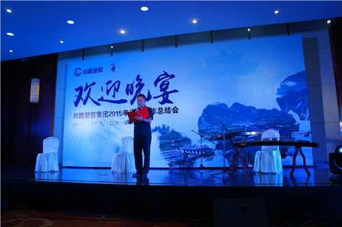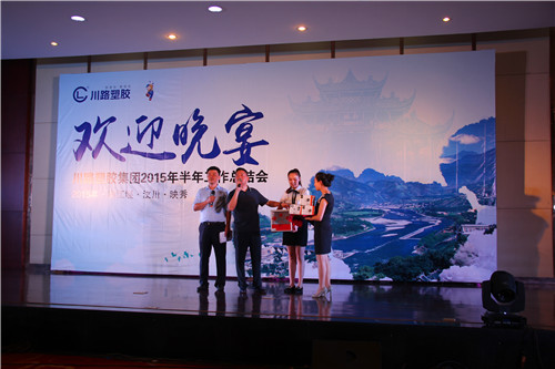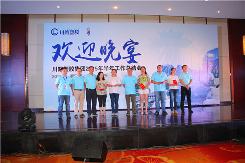 刘总首先以数字化的形式直观的展示了管材、型材近年同期销售额和产品大类的增长情况;讲述了2015年上半年中国房地产企业在政策“组合拳”的连环刺激下一线城市及重点城市出现回暖,成交量大幅度上升,价格也略有回升。但房产开发投入上半年为“去库存”,对川路产品采购量有所影响。然后从市场销售、市场建设、科研创新、生产能力、产品质量、打假成果、售后服务等方面作了总结。