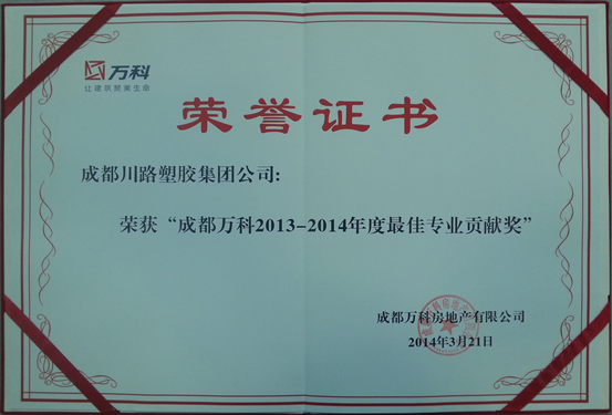 图3:川路荣获“2013年度最佳专业贡献奖”荣誉证书