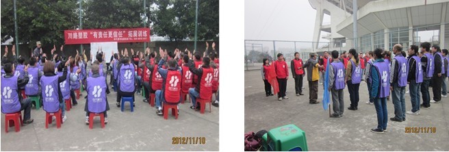 同样的一块铁,可以锯融消损,也可以百炼成钢;同样的一支队伍,可以碌碌无为,也可以拧成一股绳成就大业。为了提高团队协作能力,挑战突破员工自我,继由集团人力资源部策划组织的川路 “有责任•更信任”为主题的户外拓展训练第一期成功举办后,第二期于2012年11月10日在龙泉阳光体育城开展。此次参加的受训人员共计47人。