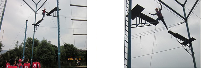 图7:“高空断桥”,勇气与智慧的较量 图8:成功跨越“高空断桥”