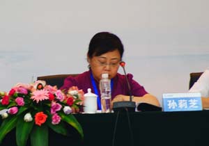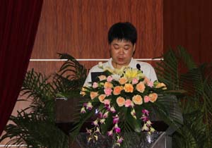 图4:集团财务总监孙莉芝女士作上半年集团财务工作报告 | 图5:集团财务经理魏波先生作上半年销售公司财务工作报告 |