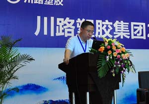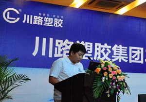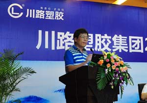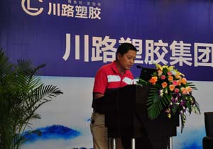| 图2:董事长周文先生部署川路塑胶集团下半年工作报告 | 图3:董事总经理刘昆先生总结上半年川路塑胶集团总体运营情况工作报告 |
