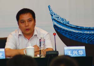 图8:型材厂厂长肖先国先生作上半年工作报告 | 图9:质保部主任王志明先生作上半年质保部工作报告 |