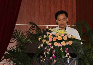 图20:型材销售川东区经理张毅先生作上半年工作报告 | 图21:销售公司总经理助理曾平愗先生作上半年型材销售工作报告 |