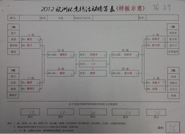 图2:一等奖获得者刘昆竞猜表