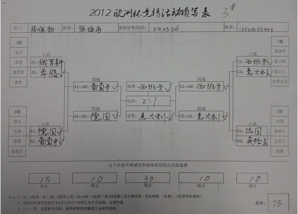 图3:一等奖获得者张继秀竞猜表
